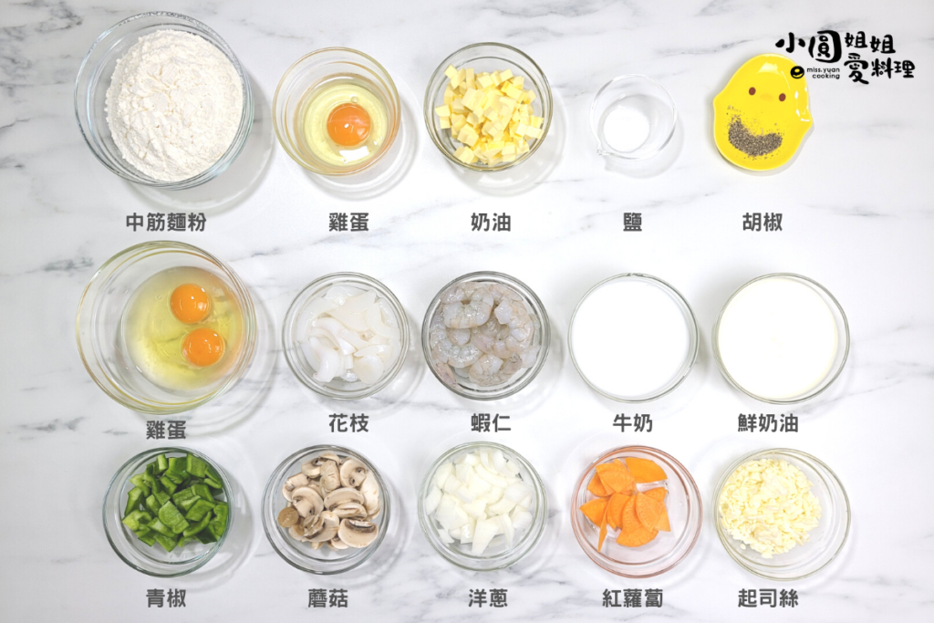 *所有材料都要用“冰的”,這樣派皮做出來比較不會回縮,且口感會比較好吃