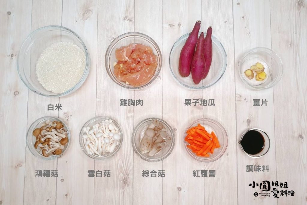 下面是小圓姐姐最近喜歡的栗子地瓜版日式炊飯,要炊的料,都可依照個人喜好進行更換唷~